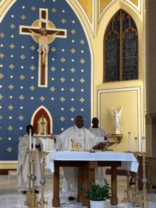 The Mass took place during one of Nebraska’s infamous summer rainstorms—so much so that the OLL gym began to flood! Fr. Vitalis, one of the Consortium’s supporting priests, celebrated the Mass and reflected on the many blessings being showered on our staff that morning. In his homily, tied beautifully to the Feast of the Transfiguration, he reminded us that God invites us each day to be transformed by His love—and through our roles in the Consortium, to transform the lives of others: our co-workers, students, families, and community.
